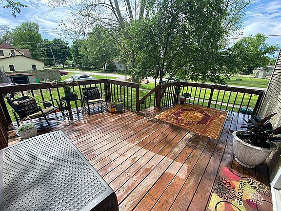 4 bedroom, 1.5 bath, Corner lot 60 x 160, middle of town, & near parks. Two story, small outside shed, no garage. Unfinished 1200 sqft. concrete basement-Block foundation., sump pump. central air downstairs- installed in 2018, two new window units upstairs will stay with home. New furnace installed in 2017. Covered Composite front porch, large back deck. 2360 finished sq. Ft. Living space. Updates also include: bamboo hardwood flooring, & new carpet installed. New drywall, light fixtures throughout, crown molding, kitchen backsplash and countertops, all new stainless steel appliances. Smart thermostat. Basement stairs rebuilt. New water heater 2020. New breakers and breaker box. New roof in 2022. $129,900.