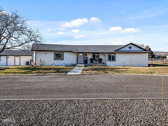 Welcome to this beautifully renovated custom home, completely reimagined down to the studs less than two years ago! Nestled on a spacious, flat 2-acre lot, this property offers a perfect combination of modern comfort and rural charm. With 4 bedrooms, an office/den, and 2.5 baths, this home has been thoughtfully designed to meet your needs.The extensive renovation includes a new roof, blown-in insulation in the walls, attic, and underflooring (complete with a vapor barrier), as well as new drywall, texture, and paint throughout. The HVAC system, electrical panel, LED fixtures, PEX plumbing, and all plumbing fixtures are brand new. The kitchen has been tastefully updated with modern cabinets, quartz countertops, and stainless-steel appliances. Durable flooring, new vinyl windows, and all-new doors add to the home's fresh, modern feel.Outside, the property shines with practical and exciting amenities. A brand-new insulated 30x50 shop with 6-inch-thick concrete floors is ready for a hoist and RV parking, 14 foot door and 16 foot ceilings. The garage has been upgraded with new doors, openers, includes a storage room, and a hobby room. For summer fun, enjoy the recently installed 20x40 above-ground pool, 54 inches deep. The exterior stucco is new, and the property features a new walkway, parking pad, and electrical outlets around the eaves for holiday lighting.The 2-acre lot includes 2.2 shares of Yakima Tieton irrigation ($473.56 annually) and a lush pasture currently planted with alfalfa hay. With city water available just two houses down toward Tieton Drive, the property also offers subdivision potential for those looking to expand or invest.Don't miss this incredible opportunity to own a beautifully updated home with endless possibilities! Neighbor will be removing the tree in SW corner of property Spring 2025.