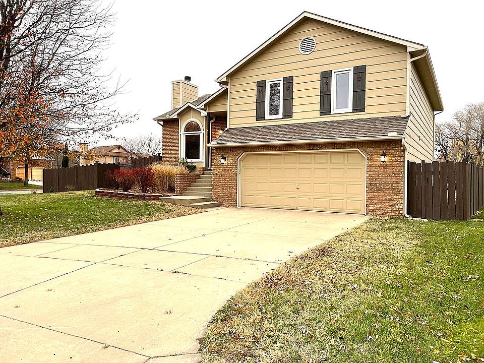 Beautiful quad level home on 1/4 acre corner lot and fully fenced in Cambridge Estates. Conveniently located 2 minutes from Kellogg/US-54 in Goddard school district. Completely remodeled in 2018 including new roof, siding, windows, finished basement and matching granite throughout. Upper level contains the master bedroom and boasts an attached bathroom with double vanities and walk-in closet. Additional 2 bedrooms with a full bathroom and laundry closet (washer/dryer included) complete the upper level. Open kitchen, dining room and living area design on main level with gorgeous new bamboo flooring and ALL APPLIANCES STAY! Wood & gas burning fireplace. Pantry with pull-out drawers and an added plus with backyard access from kitchen. Tiled lower levels include a large family room with 1/2 bath, sliding glass doors to backyard as well as garage access. Basement is newly finished with non-conforming 4th bedroom and adjacent family/rec room. Attached over-sized 2 car garage with plenty of built in storage. Enjoy access to 2 ponds with walking paths and a playground. Call for your private showing, today! Tim 316-519-8156 No Owner finance available. Must have your own financing and pre-approval letter before showing. Thanks