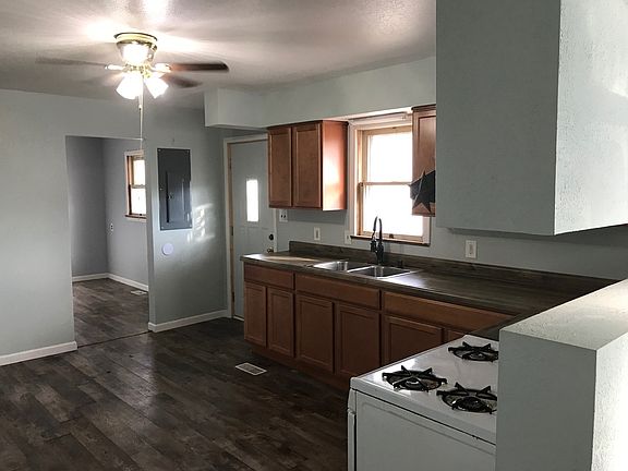This home has been almost completely remodeled. Thousand of dollars of updates have been done in the last 6 months, including a new roof. It is a 3 bedroom, 1.5 bath home with 2 car, attached garage with storage in Oblong, IL. There is laminate flooring throughout the home. A breezeway connects the garage to the home. There are water hookups located in the breezeway, as well as in the utility area off of the kitchen. The hallway between the bedrooms and bath have a shelved storage area. The middle bedroom shares a closet with the NW bedroom. The garage is 576 sq. ft., with plenty of storage. Located within walking distance of Oblong High School.