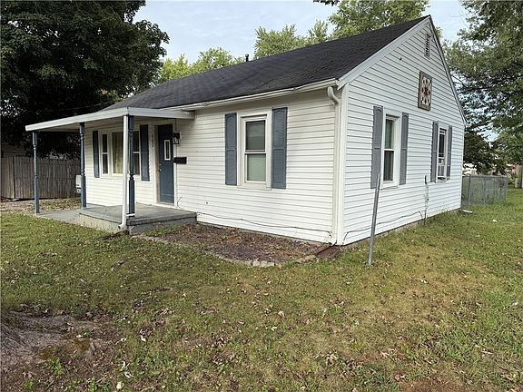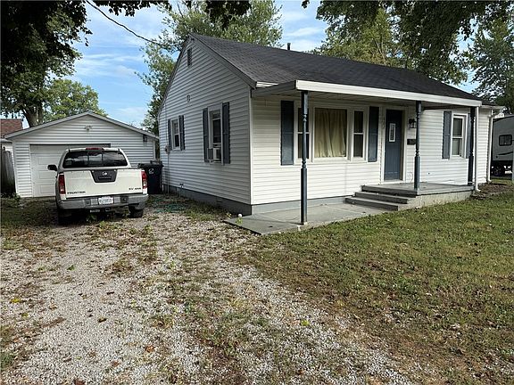 bedroom. The other bedroom is adjacent to it and both are close to the full bathroom! This house also features a large eat-in kitchen. Outside you’ll find vinyl siding, replacement windows throughout and a detached single-car garage. Call today for your private tour!