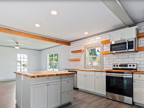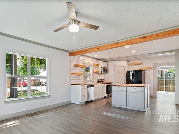 Single level home, No Homeowner's Association, Renovated in 2024. New Architectural Roof, New Stainless Steel Appliances (Stove, Dishwasher & Microwave), New Butcher Block Counter Tops with Huge Kitchen Island, New Kitchen Sink, New Kitchen Faucet, New Garbage Disposal, New Laminate Flooring, New Interior Paint, New Exterior Wood Siding, New Exterior Paint, New HVAC Hard Piping, New Blown In Insulation In Attic, New Light Fixtures and New Hot Water Heater (2022). RV/trailer parking, large corner lot, fully fenced, approx. 10'x8' storage shed with roll up door, close to schools, walking distance to downtown, shopping, fruit stands, frequent festivals and fun.
