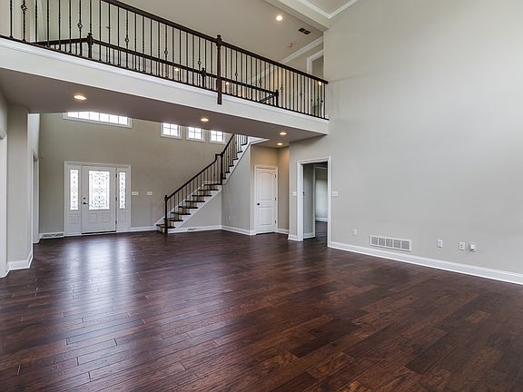 Picturesque water views. Reversed staircase with bridge walkway in open 2-story foyer and great room with stone fireplace. Stunning kitchen with pendant lighting over center island, under cabinet lighting, granite counters and breakfast nook. First floor master suite with recessed ceiling, 2 walk-in closets and chic bath with stylish deep cherry cabinetry and oversized ceramic shower. Wainscoting and recessed ceiling dining room. Spacious second floor bedrooms - guest room with private bath and two share a Jack-n-Jill bath. Finished lower level: game room with the latest brushed metal facade counter at bar area with, half bath and tons of storage. Zoned heating.