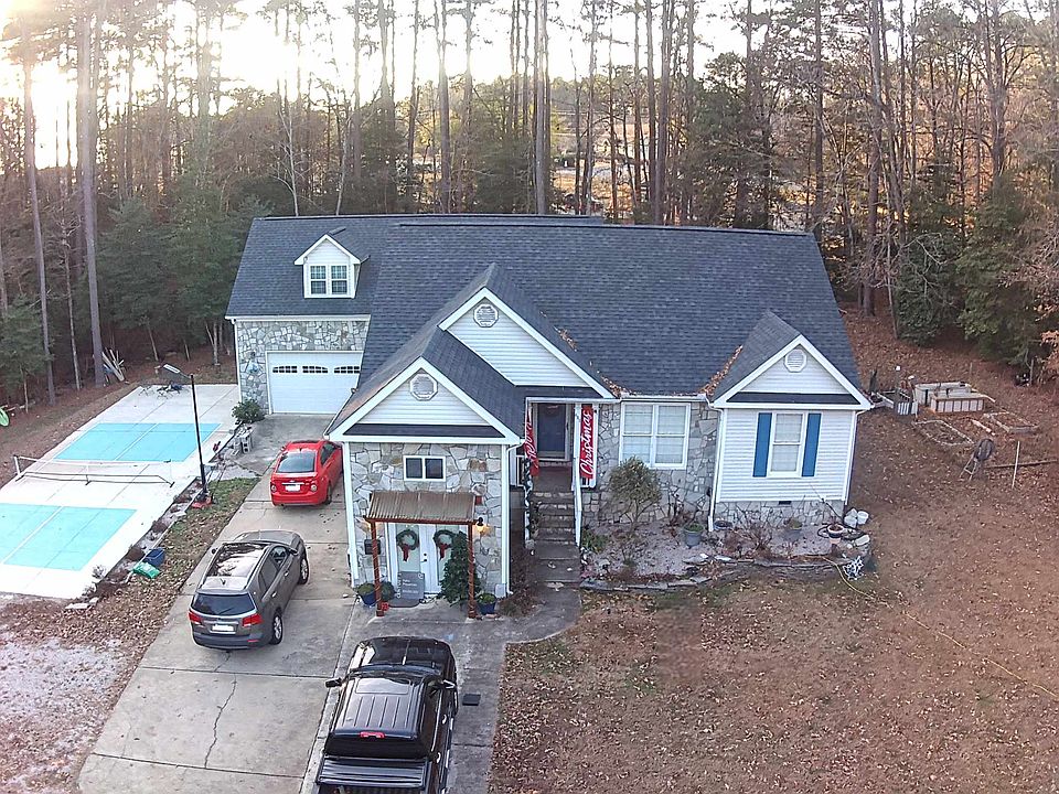 Beautifully located within the gate community of Lake Royale, just 5-8 minutes walk to the Clubhouse Lake Beach. This house boast a cathedral ceiling in both the living room and the den. There is an additional bonus room overlooking the family den. There is also a loft that can be for mulit purpose. This property is located on a .88 acre near the gate entrance. Lots of fruit trees and blue berry bushes, also a garden is available if you are into gardening. One other amazing feature is that it has a concrete pad which is currently painted as a pickle ball court. (you must have your own portable pickle ball net to use). Spacious yard areas on all sides of the property. 2 Car Garage. No pets. No smoking. Unfurnished. Minimum credit score 700, acceptable background and rental history.$40 fee per adult for background check upon application. Utilities not included. Ride on mower will be provided. Orchard and berry produce from the garden will be split 50/50 between tenant and landlord. Plenty of harvest. One year lease minimum.