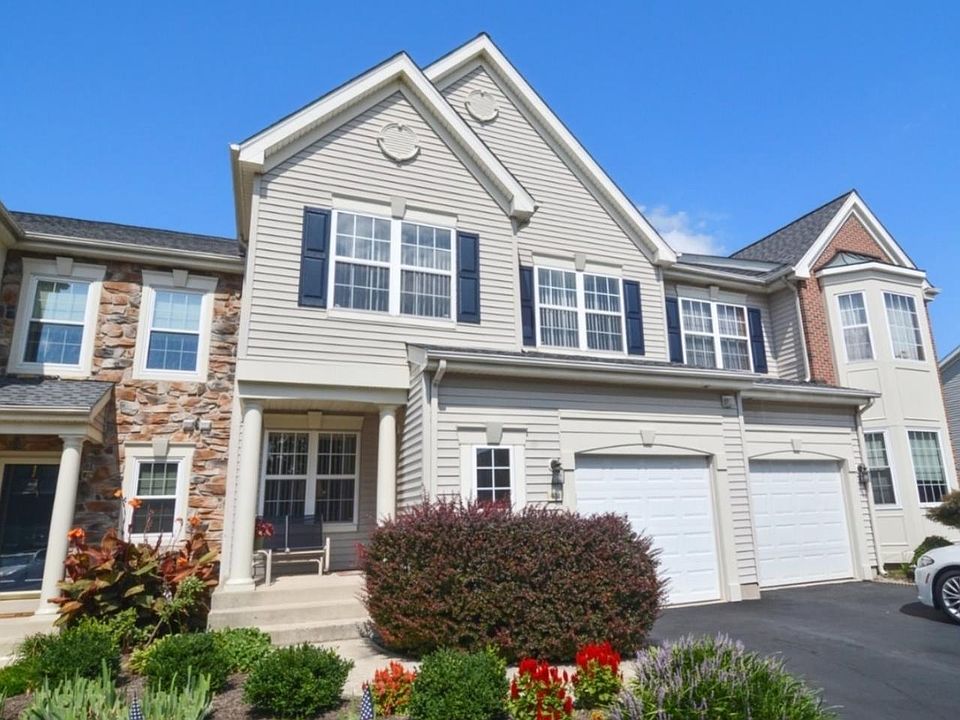 Meticulously maintained, sought after townhome in the Country Crossing Development. Featuring 3 bedrooms, 2 1/2 half baths, Finished BASEMENT and attached garage. Enter from a covered entry into the Living Room/ Dining Room that leads back to the two story Fam Room and adjacent Kitchen/Breakfast area. The Fam Room features a gas fireplace with decorative wood mantel,and is flanked by palladium windows. Adjacent is the island kitchen, with skylit breakfast room, wood cabinets, and mirrored backsplash. Sliding Glass Doors to the 10'X 12' wood deck with steps to a patio, great for outdoor entertaining! The laundry room and powder room finish off the first floor. The second floor is accessed by the dramatic staircase from the Fam Rm. The master suite has a vaulted ceiling plus two closets, one of which is a walk-in closet. The oversized luxurious master bathroom with his and her vanity sinks, large soaking tub, and separate stall shower also includes a linen closet. There are two additional bedrooms and a freshly painted hall bath that completes this level. The Lower Level or basement adds an additional 600 sq. ft. with a media room, office area, exercise room and storage closets. Great Location in a cul-de-sac with lots of parking for family and friends. Award winning Central Bucks School, minutes to major highways, fine restaurants and shopping.