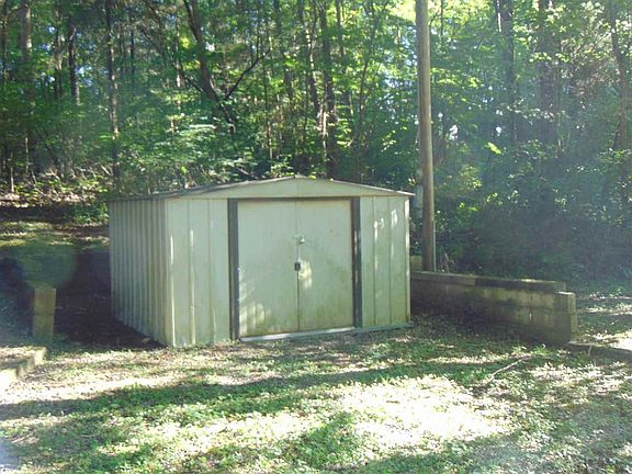 - EXTERIOR FEATURES: Trees, Porch, Gravel Drive, Storage Shed