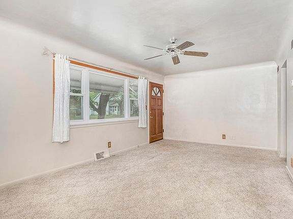 This CUTE & AFFORDABLE 2 bedroom bungalow offers a spacious living room, dining area, convenient kitchen with stove, refrigerator, and microwave, plus full basement with washer and dryer, 2nd refrigerator, possible rec room and lots of storage area. Freshly painted interior, newer vinyl clad replacement windows, aluminum siding, central air conditioning, natural gas utilities and outdoor patio area.