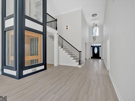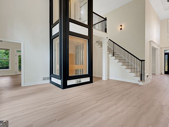 WOW... Welcome to the crown jewel of Canton's most prestigious enclave. This architectural masterpiece has been reimagined with high end designer upgrades, a brand-new roof, and every luxury detail thoughtfully curated. From the moment you enter, soaring ceilings, a statement chandelier, and a dramatic three-story all-glass elevator set the tone for modern elegance. The chef's kitchen is a dream - fully renovated with premium stainless appliances, custom cabinetry, quartz counters, designer lighting, and an oversized island with hidden walk-in pantry. Flowing seamlessly from the kitchen, the fireside family room, elegant dining room, and private office create the perfect balance of comfort and sophistication. The main-level primary suite is pure indulgence, featuring a spa-inspired bathroom with freestanding soaking tub, frameless glass shower, dual vanities, and sleek finishes. Upstairs, three spacious bedrooms and a fully updated bath provide comfort for guests. The fully finished lower level is an entertainer's paradise - with a home theater, game room, bonus living spaces, optional bedrooms, and a large den perfect for multigenerational living. Outside, enjoy a quiet cul-de-sac lot with professional landscaping, expansive backyard, oversized deck, and an epoxy-finished 3-car garage. Every detail has been elevated - from custom accent walls and designer lighting to fresh paint inside and out. Ideally located just minutes from Northside Cherokee Hospital, I-575, historic downtown Canton, fine dining, this home offers the ultimate in luxury living.