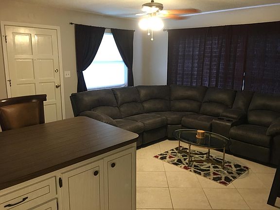 This unit has ceramic tile ,set on a diagonal thru out. The open layout is complemented by custom colors on the walls. Recently installed ceiling fans will help to keep you cool.