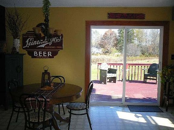 This well maintained three bedroom ranch style home is located in a country setting, on the edge of town, but serviced by city water/sewer. Built in 1994, this home features newer large windows in the living room, large master bedroom. A 2 tiered, wraparound sun deck with access via sliding glass doors in the dining/kitchen area providing a great view of the huge private back yard. A full basement, with partially finished rooms and a stubbed in bathroom has great potential for adding additional living area. The attached two car garage tops it all off. Newer, furnace, newer roof, tastefully decorated, close to school and community park. ATV, snowmobile trails and plenty of public hunting land all very nearby. All the Northwoods has to offer and it's priced to sell!