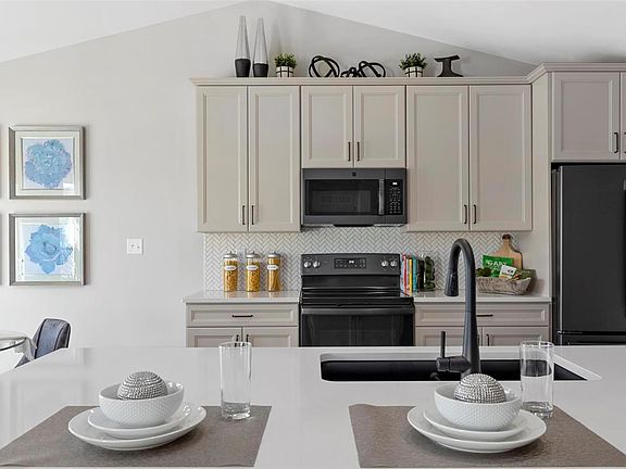 This brand new McBride Homes Aspen ranch home has 3 bedrooms, 2 baths and will be ready this Spring! Vaulted ceilings and wood laminate flooring in the main living areas. This home includes the optional kitchen plan with a flush breakfast bar open to the family room, creating the perfect seamless entertaining space. The kitchen features white 42 inch tall kitchen cabinetry and stainless steel GE appliances. The master suite features a walk in closet, and master bath features an adult height vanity with double sinks and 5Ft walk-in shower. ¾ bath rough in at basement, first floor laundry, and more. Onsite amenities at Prairie Wind include a community playground, pavilion, and sports court. Enjoy peace of mind with McBride Homes' 10 year builders warranty and incredible customer service! Similar Photos Home Shown.