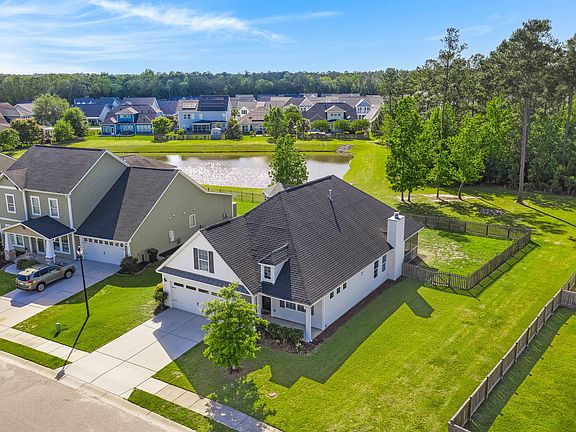 Location! Location! Location! This beautiful home sits on a POND lot in desirable Foxbank Plantation! This gorgeous home features 5'' hardwood look vinyl floors in main living areas! 36'' staggered cabinets in kitchen w/crown molding, GRANITE counters with recessed lighting, Stainless Appliances w/gas range and built in micro. The primary bedroom is downstairs and it features an en-suite bathroom with a shower and double vanity. There is an additional two bedrooms, dining room/flex room, full bath and laundry room downstairs. Upstairs there is an additional bedroom/FROG with full bath. The large lot is fully fenced, with a screened in porch that over looks the woods and pond. You can enjoy fishing in the evenings while taking in the amazing views. This is lowcounrty living!