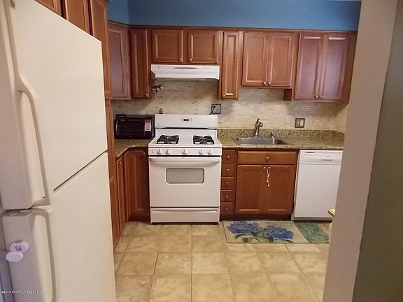 Move right into this lovely 2 bedroom 2 full bath condo. This spacious unit features recently installed custom kitchen cabinets topped off with a beautiful granite counter top. From the kitchen step into the large dinning room / living room combination and warm yourself by the wood burning fireplace trimmed in gorgeous slate. The master bedroom features a huge walk in closet with private master bath. Double doors open to the 2nd large bedroom with with a triple door closet and private entrance to the 2nd full bath. Grill out on the terrace with gas barbecue hook-up while enjoying the view from your lounge chair. *Short Sale**3rd party bank approval for sale price & commission. As is sale including any state or local requirements including CO and water testing if required. Walk to NYC Bus!