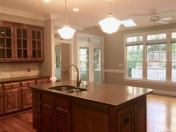 Stately two story home on a 1/2 Acre wooded lot. This home has been meticulously maintained by the original owners. Fenced in backyard. Spacious eat in kitchen w/ custom cabinets & stainless steel appliances. Approx 1200 sq ft unfinished 3rd floor attic space. MacGregor West features custom-built European style homes, winding walking paths, meticulous gardens, stone walls, and iron lampposts. The community is conveniently located near Lake Pine, MacGregor Downs Country Club, RDU airport & RTP