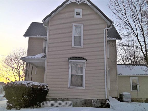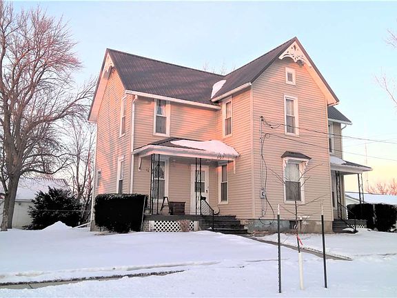 Don't miss this one. 3 Bedroom home w/the possibility of a 4th bedroom next to the dining room with a wall put in. Wood burning stove would need to be removed. 2 full baths, updated kitchen w/all appliances staying. Forced Air heat & central air. Most rooms have ceiling fans. Can use some updating. Has vinyl siding, newer windows, & a metal roof. 2 car detached garage w/openers. Clean basement and updated electrical. 3rd bedroom upstairs is irregular shaped & has a walk in closet. Pantry in hall by Kitchen.