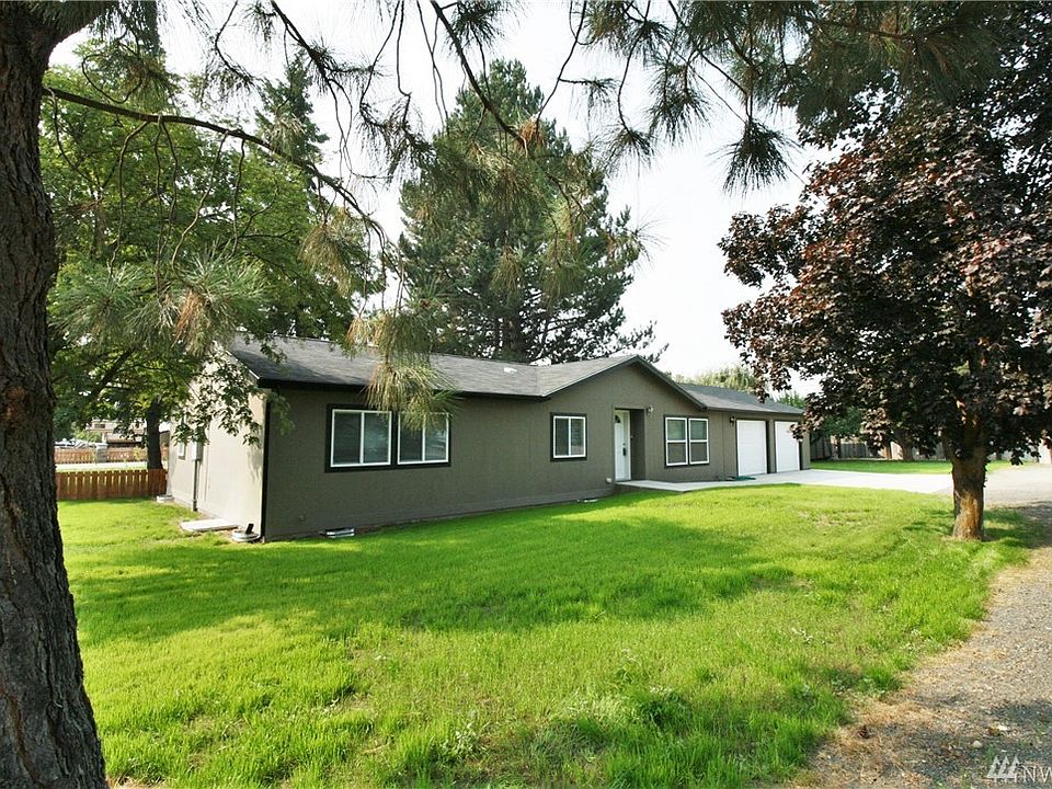 Brand New! 3 bedroom has vaulted ceilings throughout w/the living room open to dining rm. Kitchen has ample counter & cabinet space, can lighting, solar tube & Appliances! Laundry rm w/washer & dryer included. 2 spare bedrooms & full bath in hallway w/a solar tube. Master has 2 closets & large bath w/a walk in shower, taller counter height w/double sinks & extra Storage! BIG 27 X 26 garage w/large parking pad/Ele openers & sidewalks around most of home. Gutters. 15 X 20 storage building. FA w/AC