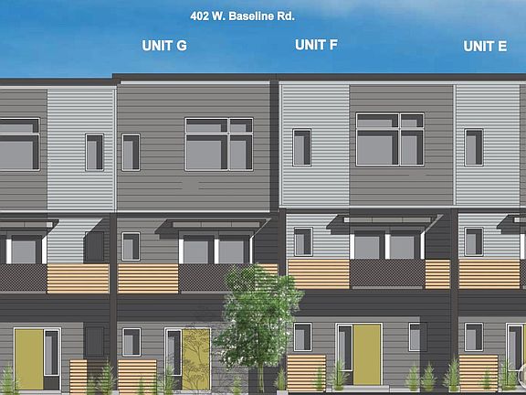 Lafayette New Residential Construction,Convenient Location in Downtown Lafayette, walk distance to everything,Lafayette Recreation Center, Parks , Trails, Library , Elementary Schools, Day Care, Shopping, Restaurants, Old Town Lafayette, walk score 76 , Buildings are 2 and 3 story design, 2 bedrooms ,3rd bedroom 3 bath option* with 2.5 baths, with laundry room top floor, Attached finished 2 car garages, full unfinished basements 9' ceiling with rough in bathroom. Stainless Steel appliances. D/W, electric range, microwave, quartz composite counters,Huge Windows, tree top views , mountain views, Units are Light, Bright and have easy access from Baseline Road, private parking lot for visitors