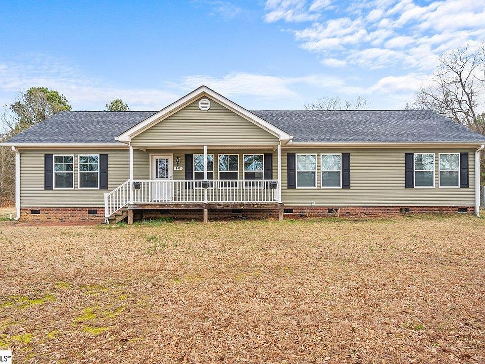 A rare find! Set back off a quiet country road, this sprawling 1800 sf ranch beckons you. On just under a full acre and no HOA, you will have the freedom to enjoy this amazing home. A large covered porch serves the main entry and, around back, a fully fenced in backyard is perfect for pets, a swing set for the kids, or an inviting fire pit. There is plenty of space for parking, and should you be inclined, there is also ample room for the addition of a detached garage or workshop. This home is only seven years old, is freshly painted, and totally move-in ready! The master BR is huge, with a spacious ensuite bath, including double sinks, amazing cabinetry, a soaking tub, and a double sized stand alone shower. The modern kitchen has stainless appliances, cabinets galore and a walk-in food pantry. Eat at your kitchen counter, or drift into your formal dining room for larger gatherings. After your meal, the family room is only steps away. From there, you can retire to your Master bedroom suite. Your kitchen also connects strategically to your beautiful living room, which leads to the other two bedrooms and second full bath. The open floor plan makes this home seem even bigger than it already is. Around back, there is a door to the laundry/mud room complete with a premium large pet door built right in. A big double glass slider off the family room provides lots of light and opens onto a wooden deck and also the fenced in yard. There is a large storage shed inside the fenced area, with power already running to it. This home won't last....see it before it's gone!