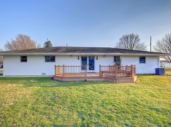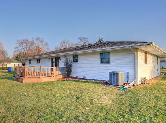 Immaculate ranch! Corian counters in the kitchen, loads of storage cabinets, hardwood floors in bedrooms and under carpet, large composite deck, 2 car attached + 1 car detached garage, on large corner lot. Updates include front Pella window 2009, dishwasher 2012, microwave 2010, windows 2010, deck 2006, roof 1999, A/C 2006, furnace 1993, heat exchanger replaced 2003, French door 1995, refrigerator/stove/washer/dryer 1999.