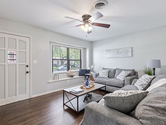 Move in ready! Updated 3 bed 1 bath with quartz counters, tile backsplash/shower, fresh hardwood floors throughout; as well as new plugs, switches, fans, and lights, and new plumbing under sinks and in the shower. The roof and the AC/HEAT were updated in 2019. Great floor plan and is right next to Broken Arrows Central Park! It has a huge yard with a storm shelter and a very large shed out back. This would make a wonderful home! Agent/Owner. Sold As-Is.