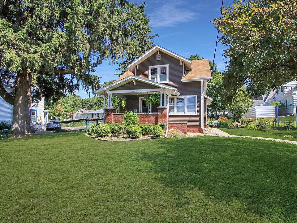 Updated in town living at its best can be found in this 3 bedroom home that sits above and back from the street. Established landscaping gives this home a private feel from the front porch and yard. Remodeled kitchen and half bath, newer a/c, electrical and siding are just a few of the updates made to this home that boasts original woodwork and charm. Full basement houses laundry with extra room for storage. Afternoon shaded patio, large dining and living rooms provide comfortable spaces to entertain. 3 car detached garage is insulated and drywalled, giving ample space for hobby, tinkering, and storage.