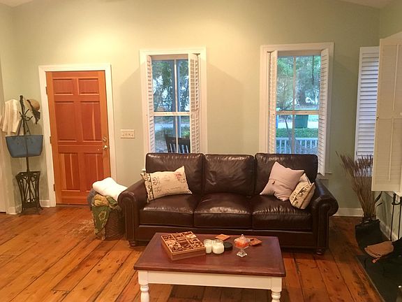 Beautiful 3 bedroom, 2 bath cottage near Historic Downtown Beaufort. Built with stunning reclaimed hardwood floors. Kitchen has granite countertops and all new 2021 stainless appliances. Master bedroom features his and hers closets, with ample linen and storage closets throughout the spacious home. The two guest rooms have their own closets, as well as the second bathroom. Open floor living space features a perfect bartop counter and a cozy log fire place for entertaining. A separate formal dining room provides even more space for family and friends. The home features ample modern upgrades such as USB outlets, smarthome thermostat, programmed sprinkler system, wiring for surround sound speakers, and more. It has two porches for enjoying outdoor Beaufort weather, along with a spacious fenced backyard and storage shed. This is a great location for those who want to be close to downtown and the Spanish Moss Trail. This is an incredibly friendly and safe neighborhood, with EMS and a fire department both within a half mile radius of this prime location.