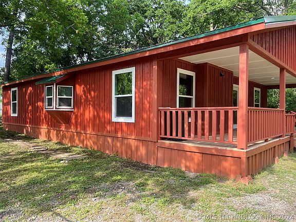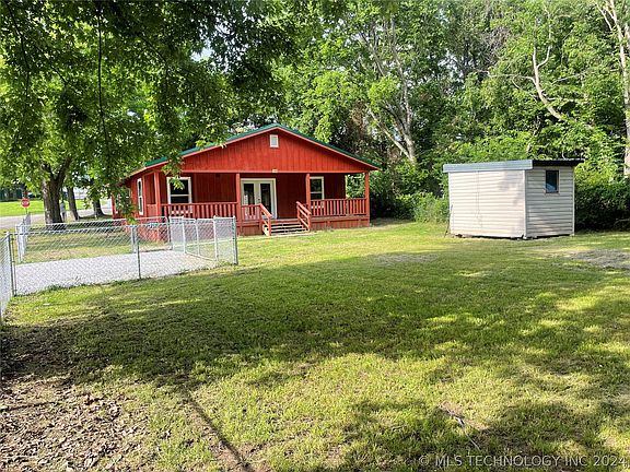 Beautiful, totally rebuilt, (like new), 3 bdrm, 2ba, home, with over 2000 sq ft, located in the quiet, quaint town of Locust Grove. The home boasts of a large front deck, metal roof, gas log fireplace, hanging racks for your dishware, pantry, large laundry room and the most charming built in breakfast booth. The pristine waters of Lake Hudson are only 10 minutes away, providing ample recreational opportunities. For those with industrial interests, the renowned Mid America Industrial Park is a mere 20-minute drive, making this property an ideal location for a quick commute. The city of Tulsa is only a 45-minute commute, ensuring easy access to urban amenities and entertainment. The property is chain linked fenced on three sides and smooth wire fenced on the back. Cherokee Turnpike is only a mile away for easy access. This home truly is a must see.