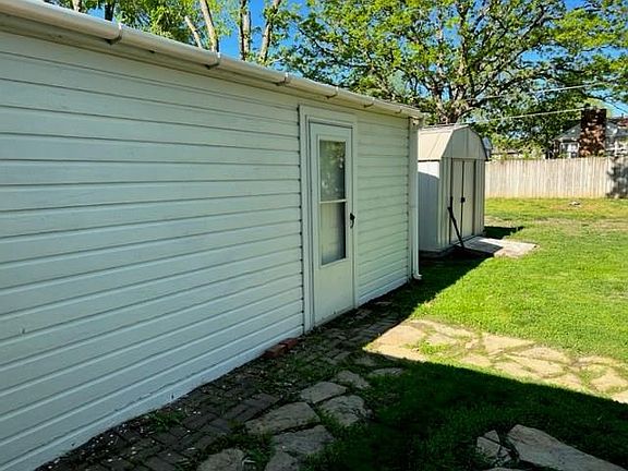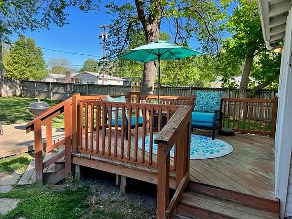 What a cute Bungalow located on a large Corner lot with privacy fence. Large mature shaded trees. Central heat and air. This is great starter or empty nester home. Furniture that can stay at listed price would be Living room: couch, recliner, TV with stand, East bedroom, full size and bunk bed, gray dresser/mirror, gray jewelry box, Kitchen: Refrigerator, stove, microwave on counter and built in microwave but seller says it doesn't work, Table and chairs, dresser, Laundry room: washer and dryer. Raised deck off back of house outside table and chairs.  Nice kitchen with lots of cabinets and counter space. Laundry room with space for storage. Garage has electric and overhead controls for door .Warwick is in a flood zone and this house is on the west side of Warwick and this seller and past seller said they had no water in house. Seller's current flood insurance is $381.60 per year buyer should determine their cost by getting quotes from insurance agents.