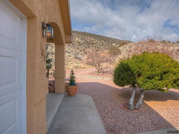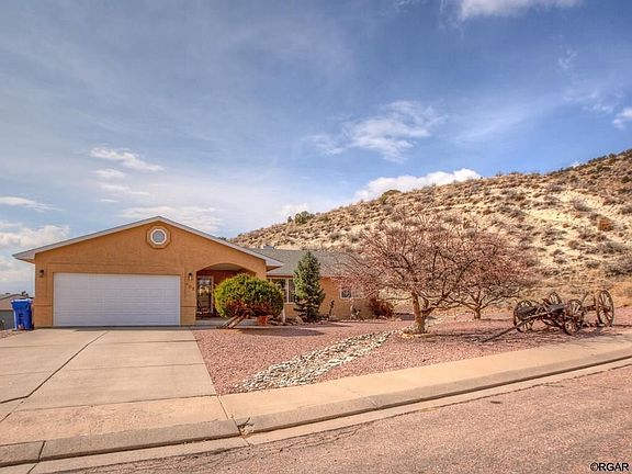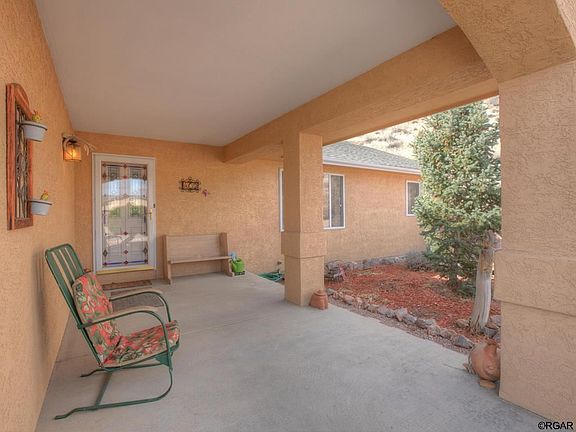 Come see this beautiful home tucked away just minutes from downtown Caon City, offering a very private location at the gateway to the Hogbacks with direct access to trails and open space! This 1993 Snyder build boasts an open, split bedroom layout as well as outstanding views of the hogbacks and Caon City. With just over 3/4 acres of quality xeriscaping and carefully manicured trees, covered back patio, hot tub, and covered front porch, opportunities for enjoying the outdoors here abound! Features vaulted ceilings and sky tubes providing plenty of natural light, a large kitchen with a breakfast bar, and an extra family room with a gas fireplace and access to the back patio. Master bedroom includes an extra dressing area and full walk-in closet with private access to the back patio. Don't miss out on this rare find!