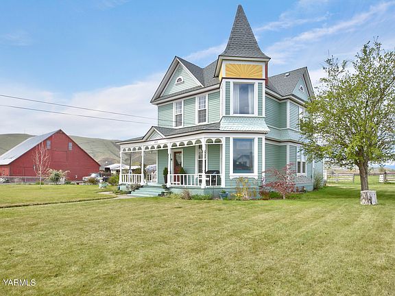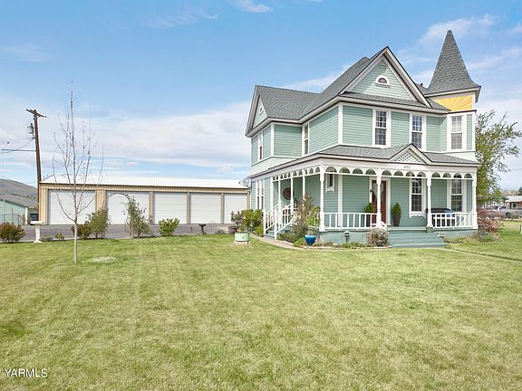 Welcome to 402 White Street, a timeless Victorian beauty in the heart of the Yakima Valley. Architectural details abound -- you won't find another property as rich in character or opportunity as this one! Proudly situated on a large1.49-acre lot, this magical home features 3 bedrooms, 2 baths with just under 2500 SF of living space and enriched with natural sunlight. Enjoy coffee al fresco on the beautiful wrap around porch overlooking the sprawling lawn and quaint creek. For the car enthusiast you will find 5 bay shop, small detached wood shed and an additional detached shed/garage, perfect for extra storage or transform into art studio or possibly a small VRBO. Home has been carefully restored with updated electrical, plumbing, both roof and new HVAC replaced in 2020. Zoned R-2 with public utilities and irrigation. This one-of-a-kind home that has been lovingly cared for and we invite you to come see what this home will inspire in you!