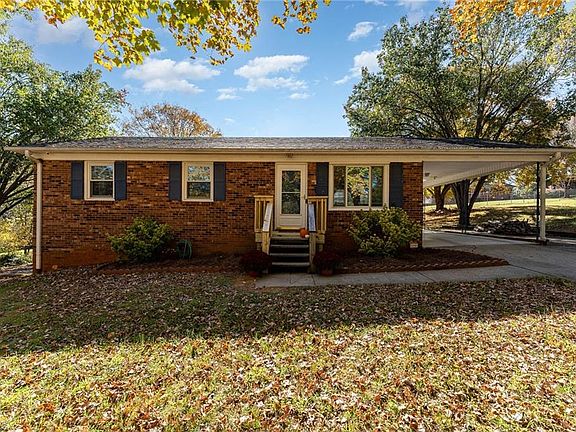 Perfect starter or retirement home! This one level on a basement in Mocksville, NC has been perfectly maintained. This home includes laminate hardwoods and tile throughout placed in 2020, ample parking with 2 driveways, full unfinished basement for storage/workshop with garage, plantation blinds, a fire pit/patio, a new hot water heater in 2021, refrigerator and microwave included. Upper driveway to carport is perfect for guests and everyday living, lower driveway to basement garage which has ample room for storage and a workshop! Move in ready - don't miss this gem!