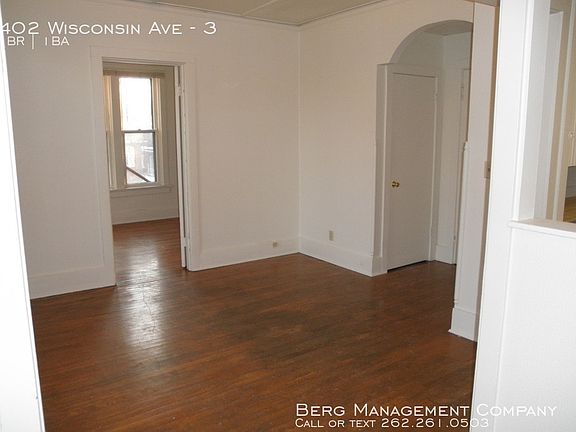 This is a 1 bedroom, 1.0 bathroom, multi family home. This home is located at 402 Wisconsin Ave APT 3, Waukesha, WI 53186.