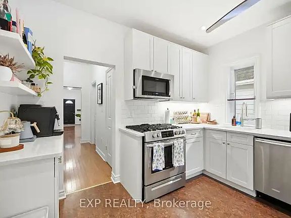 402 Woodfield Road #A Welcome to this beautifully upgraded upper-level 1-bedroom, 1-bathroom suite in a meticulously renovated detached bungalow, located on a quiet, tree-lined street in the heart of Leslieville. This residence offers a highly functional layout with excellent flow, maximizing space while maintaining warmth, charm, and comfort. Featuring approx. 9 ft ceilings, hardwood flooring, and a bright, modern kitchen, the unit is thoughtfully designed for everyday living and entertaining. The open-concept living area is filled with natural light, creating an inviting atmosphere, while the well-proportioned bedroom offers privacy and practicality. The upgraded kitchen provides ample storage and workspace, making the most of the efficient design. Parking is available, adding convenience in this sought-after neighbourhood. Tenants can also enjoy the home's beautifully landscaped outdoor surroundings and charming curb appeal. Ideally situated steps to transit, parks, schools, and the vibrant shops, cafes, and restaurants along Gerrard St East. Minutes to Monarch Park, Greenwood Park (rink, pool, dog park, and farmers' market), and a short walk or bike ride to the Beach & Boardwalk. An exceptional leasing opportunity for professionals or couples seeking comfort, character, and connectivity. All utilities included.
