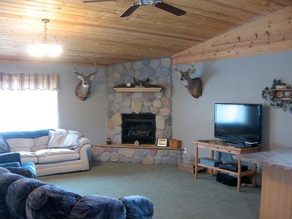 One level living in the country. 3 bedroom 1 1/2 bath with spacious living area (24x32)-Kitchen, dining, living room. Newly built in 2007, attached heated 2 car garage on a nice 5 acres.