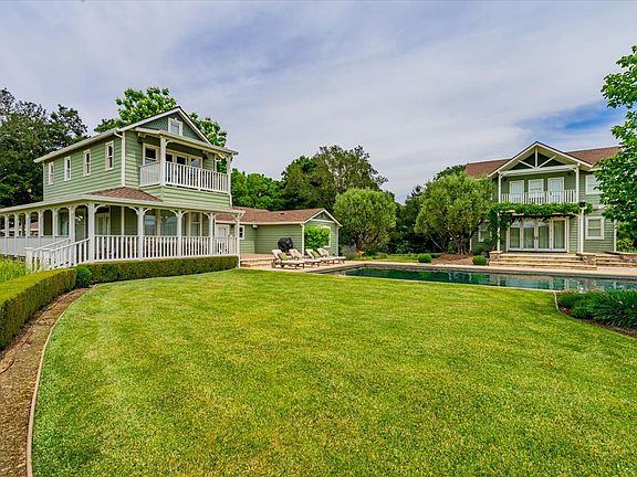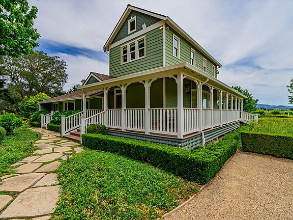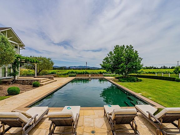 Furnished 5-bedroom, 5.5-bathroom country estate located in the heart of the Oak Knoll District, just minutes from downtown Napa. This property is situated down a private lane lined with heritage oaks and offers sweeping vineyard views and lush gardens. The gated estate features a main house with 3BD/3BA and a separate guest house with 2BD/2BA. The main house showcases an open-concept floor plan, including an inviting living room with a fireplace, a gourmet kitchen equipped with high-end appliances and finishes, a media room, a bunk room with eight beds, and an additional guest room. On the second level, you will find an office and the primary bedroom suite, which includes a private balcony and panoramic views. The guest house offers a family room with a full bar and two en-suite bedrooms with a balcony. Modern conveniences include Wi-Fi, DirecTV, whole-home audiovisual systems, a Peloton, and a 220V EV charger. This estate is an ideal setting for entertaining family and friends, featuring a welcoming veranda that leads to expansive outdoor living spaces. Enjoy a vegetable garden, a 24x60-foot pool with LED lights and cascading fountains, a sports court, an oyster shell bocce ball court, a fire pit, a game room, and lush lawns perfect for savoring farm-to-table meals under the catalpa tree. Take a bike ride and explore the trails in every direction, or visit the excellent wineries nearby. This peaceful and private retreat is perfect for relaxation, celebration, and play!