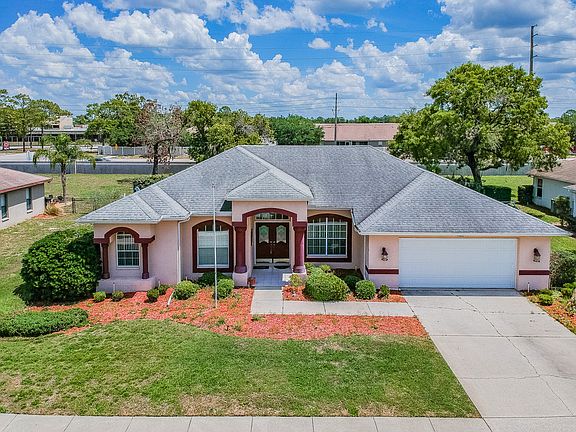 Four bedroom pool home with a den/office in the highly desired gated community of Pristine Place. The open, split floor plan boasts over 2100 square feet of living space. The oversized living room and dining room combo greet you as you enter(dinning room chandelier does not convey). You will be impressed with the open feel. If you love cooking you will love this huge kitchen. With plenty of counter space and cabinets to please the cook in your home. Then after your dinner take a dip in your clean, refreshing in ground pool. Or just relax on the screened in lanai. The bedrooms are also large and comfortable. The master is huge and leads out to the pool. Bathroom features dual vanities and a step in shower with a garden tub. Situated on an oversized lot this home is priced to sell.