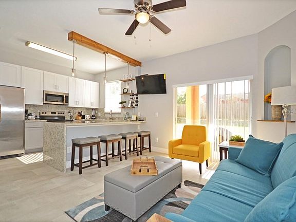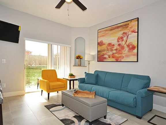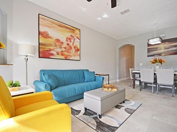 THIS IS ONE TO SEE Beautifully fully RENOVATED Townhome perfectly situated in Gated Regal Palms Resort, its the perfect space for a family with 4 bedrooms 3 baths or for short term rentals, the selller has completly transformed this home from the open plan kitchen with stunning granite worktops ,stainless steeL appliances and the EQUISITE modern decor !!! Add to that that located on premises for you or your renters is a booking office to get discounted tickets to all major attractions, parks, events. It offers some unique opportunities for you or your rental guest to enjoy, like the restaurant, bar, ice cream parlor, spa, gym, lazy river pool, regular pool, arcade area, indoor and outdoor playground. The perfect place for you to relax or for your rental guest who will can enjoy the constant activities, movies by the pool, volleyball, music events, games & much more. This community is well known for its convenience to travel to Disney parks, Universal Parks, Sea World, Tampa beaches and local stores and supermarkets walking distance and so much more. The kitchen is s open plan with comfortable family/dining room that allows you or your guest renter to enjoy each-others company, This Townhome also has a master bedroom in the main floor with a bathroom & walk in closet, after a Fun day of enjoying our topical pools or parks the stack-able washer and dryer are conveniently located in the main floor. 2nd floor are 3 additional bedrooms, a very ample M/Bedroom w/its own bathroom & walk in closet. 2 other bedrooms that have twin beds s & a shared bathroom. This home is being sold As-Is and fully furnished (please see the Realtor Remarks) this is a turn key home for 1st time home buyer, AirBnB type investor. Cable/Internet/roof care are included with HOA fees. Land, Site, and Tax Information