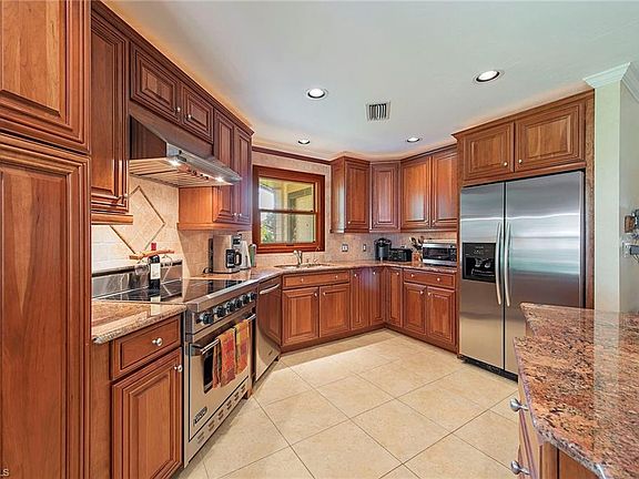 Unique two story-end unit Villa with lushly landscaped yard offers the privacy of single family living. Features include bright great room w/soaring vaulted ceilings & transom windows. Remodeled kitchen is an entertainer's dream offering adjacent powder room, seating area, dinette, cherry cabinets with under/over lighting, granite counters, center island & stainless-steel Viking & Kitchen Aid appliances. 1st floor master suite is gorgeous w/updated bathroom featuring double sinks, granite counters, walk-in shower w/frameless glass doors & a claw foot soaking tub to relax in luxury. There's plenty of room for family & friends w/2 bedrooms & a full bath upstairs. The lanai has 2 skylights, gorgeous French doors, plus it's screened & enclosed w/impact glass sliding doors for year-round enjoyment. Outdoor patio overlooking tropical landscaping completes this special paradise offering. Amenities include renovated clubhouse, large lakefront heated pool, tennis & pickle ball courts. Walk to the beach & Venetian Village shopping & dining. Information contained herein deemed reliable but not guaranteed.