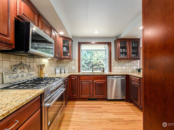 Explore the beauty of this 3 bedroom 2.5 bathroom house situated on MV Hill! The outside is wonderfully landscaped, while the inside is meticulously maintained. Indulge, in the joy of cooking and baking in the kitchen that will inspire any chef with high quality cabinets, beautiful granite countertops and a connected dining area. Get cozy by the fireplace in the living room with its vaulted ceilings. Relax in the suite. Let your worries melt away in the luxurious jetted tub. The lower level offers a space for hosting get togethers featuring a fireplace and elegant French doors that open up to an enclosed backyard. With new paint throughout updated fixtures, new appliances and a new roof this home is ready for you to move in.