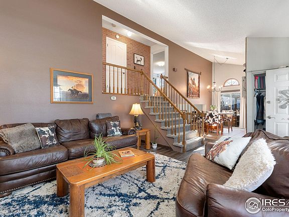 Step into this charming home and prepare to be wowed by its ingenious design, abundant natural light, and delightful living spaces. The home's curb appeal is enhanced by a landscaped front yard with mature trees, creating a welcoming entrance. The unique four-level layout is anything but ordinary, offering three separate living areas designed for entertainment, relaxation, and everything in between. Whether you're hosting guests, enjoying movie nights, or just finding a quiet place to unwind, there's a perfect space for every occasion. The introduction of newer flooring throughout the house, coupled with fresh carpet installed in 2024, updated light fixtures, and a recent paint refresh ensures an inviting ambiance from the moment you step inside. Enjoy the glowing flames from the whitewashed brick fireplace as you unwind after a long day. The kitchen is equipped with stainless steel appliances, granite countertops, and hand-troweled walls that add texture and character to the space. Upstairs, the spacious primary suite is a true retreat, complete with an ensuite bath for ultimate comfort. An adjacent bedroom provides flexibility, serving perfectly as an office or nursery, adapting to your changing needs. The property extends its welcome outdoors with a back yard recently updated with new sod and features a patio with a pergola for shaded gatherings, and includes a bar area, a gas fire pit, and a gas grill perfect for laid-back evenings or lively gatherings. Two storage sheds provide ample space for outdoor equipment and gardening tools. Situated just a short drive from some of Colorado's most stunning natural landscapes, this home offers easy access to outdoor adventures at Devils Backbone and Horsetooth Reservoir.