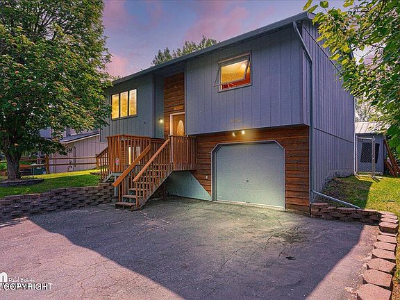 Enjoy those beautiful Alaskan summers in this home with a south facing back deck that gets lots of sun! Beautiful South Anchorage home updated in 2022. Living room flows nicely into the kitchen and out to the large back deck with a big open fenced in back yard. Long lasting hot water with two hot water heaters. Four bedroom two bath home with two bedrooms and one bathroom upstairs and downstairs