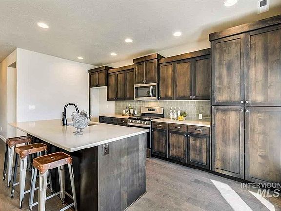 Excellent location, access to I-84, the Village, 10 minutes from Downtown Boise! S. Meridian's Luxury Gated Community with Custom cabinets, quartz counters, lots of hardwood flooring, gas fireplace, tiled at main bath & master shower, and lots of natural lighting, large walk- in closet in the master with ceiling fan. South facing with large patio. Comes with refrigerator, dishwasher, gas stove, and large laundry room inside the home. Rent includes access to a stunning 2, 600 Social House (clubhouse) with plenty of events, a beautiful brand new pool, and gym on-site. All landscape maintenance, snow removal at driveways and streets are included and covered by the HOA. There are walking paths and 3 parks in a very quiet new neighborhood. Renter responsible for all utilities. One small dog may be considered with additional pet deposit. No smoking allowed in the home or on the premises. One year lease required. HOA is included in the rent.