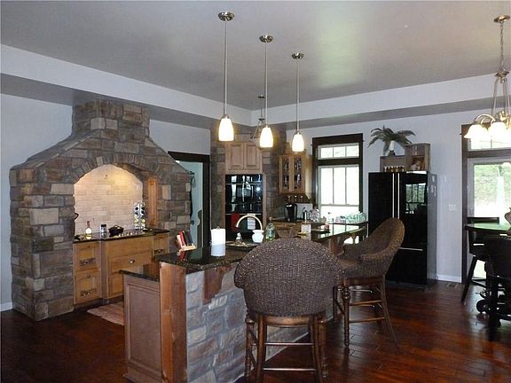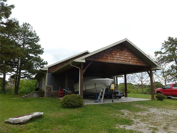 Luxury Open Concept Home located in Eureka Springs just minutes from downtown. Nestled on 5+ Private acres this home has a large open Great Room with vented gas fireplace, hearth style cook top, built in oven/microwave. Multi level island counter with breakfast seating. The large open area has a built in hutch cabinet and ample table seating space. Split floor plan offers a second bedroom with full bath. Large unique master bedroom suite has a large walk in shower, is plumbed for a 2nd free standing claw foot tub (tub was removed and that area is currently configured for exercise equipment but plumbing remains under floor), huge master closet and separate water closet. Walk out onto the large deck with great mountain view. 24 x 24 carport and storage building give lots of room for toys. RV electrical and water hook up with septic.