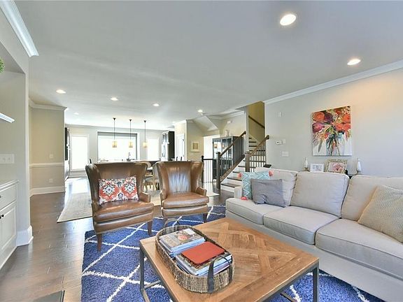 Beautiful townhouse tucked away in a quiet community located only 2 miles from vibrant Canton Street! Light & Bright open floor plan w/gleaming wide plank hardwoods on main. The show stopping kitchen features an oversized island w/breakfast bar, gorgeous cabinetry w/deep pot & pan drawers & counter space galore! Fireside fm rm w/built in's opens to the private deck w/a lush tree lined view. Upstairs features the spacious master suite, seperate his/her vanities, glass shower, soaking tub, & large walk in closet. 3 additional bdrms, 2 car garage, & covered patio!
