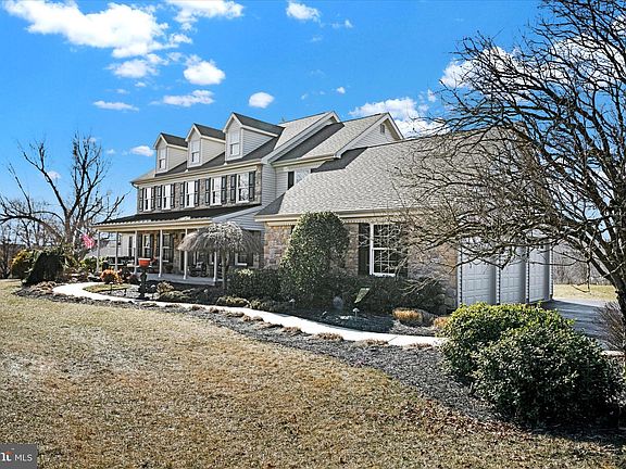 Welcome to The Estates at Brookside and 4020 Fountain Circle, a distinguished residence in this exquisite enclave of 33 homes nestled in bucolic Fountainville, PA, just minutes from Doylestown. Originally the builder’s own home, this stunning property seamlessly blends understated elegance with modern comfort, offering a truly exceptional living experience. As you approach, lush, meticulous landscaping sets the tone for the warmth and character that define this home. The expansive farmhouse-style front porch invites you to sit back on a rocker or sway on the porch swing while taking in the serene surroundings. Step through the gracious foyer, where a living room (currently an office) sits to the left, and on the right, a spacious dining room with elegant case wainscoting and crown molding. Make your way through the foyer to the light-filled, two-story family room, where a fireplace with stone surround and shiplap accents creates a cozy retreat on chilly evenings. The family room flows seamlessly to the heart of the home, the country kitchen with breakfast area and center island. The kitchen features newer stainless-steel appliances, quartz countertops (2021), tile backsplash and abundant cabinet space. The first-floor laundry/mudroom with granite countertop (2021) provides access to the 3-car attached garage. Down the center hallway to the other side of the home, you’ll find a recently refreshed powder room and the gracious 1stfloor primary suite. Tucked in its own wing, the primary suite is a secluded retreat with a huge ensuite bathroom with dual granite-topped vanity, two linen closets, a generous walk-in closet and direct access to the deck and hot tub. Upstairs, an open walkway overlooks the family room, enhancing the home’s open, airy feel. There are three large bedrooms and a full bath. One bedroom has a very large walk-in closet, which leads to a full staircase to the massive attic. A door from the center bedroom provides access to additional storage space over the garage. The kitchen may be the heart of this home, but if you’re looking for additional recreation or entertainment space, you’ll find it in the fabulous finished basement. Designed for both relaxation and recreation, the basement is a standout feature, offering a second full kitchen and a full bath. Game tables (pool, foosball and shuffleboard) and electronic slot machines are included with the sale. An unfinished area currently serves as a workout space, but could also provide additional storage or a workshop area. With direct egress to the yard, the basement could potentially become an in-law or au-pair living area. Outdoor living space? You’ll find it here! Set on over 3 acres, this property provides plenty of room to roam or relax. The composite deck spans nearly the length of the home and affords sweeping vistas; a motorized awning provides shade and two exterior closets supply extra storage. Imagine relaxing evenings in the hot tub under the stars. Or gather around the built-in fire pit – perfect for crisp nights with friends and family. A staircase at the rear of the property leads to a wooden bridge over a babbling brook and a truly unique feature: a detached 4-bay garage with its own driveway–a dream for car enthusiasts, collectors, or hobbyists. Measuring approx. 30’ X 60’, this garage offers heavy power and workshop space. For fun, there’s even a pickleball court with a portable net! A 2-zone heating and cooling system with 3 air handlers ensures comfort throughout the house. There are a 75-gallon propane water heater, a water softener, 2 sump pumps and an on-demand generator. This home offers exceptional craftsmanship and pride of ownership with thoughtful updates including brand-new (2025) flooring throughout the first floor and updated lighting and faucets. A neutral color palette offers the perfect backdrop for your personal touches. This home is a must-see for the discerning buyer - schedule your private tour today!