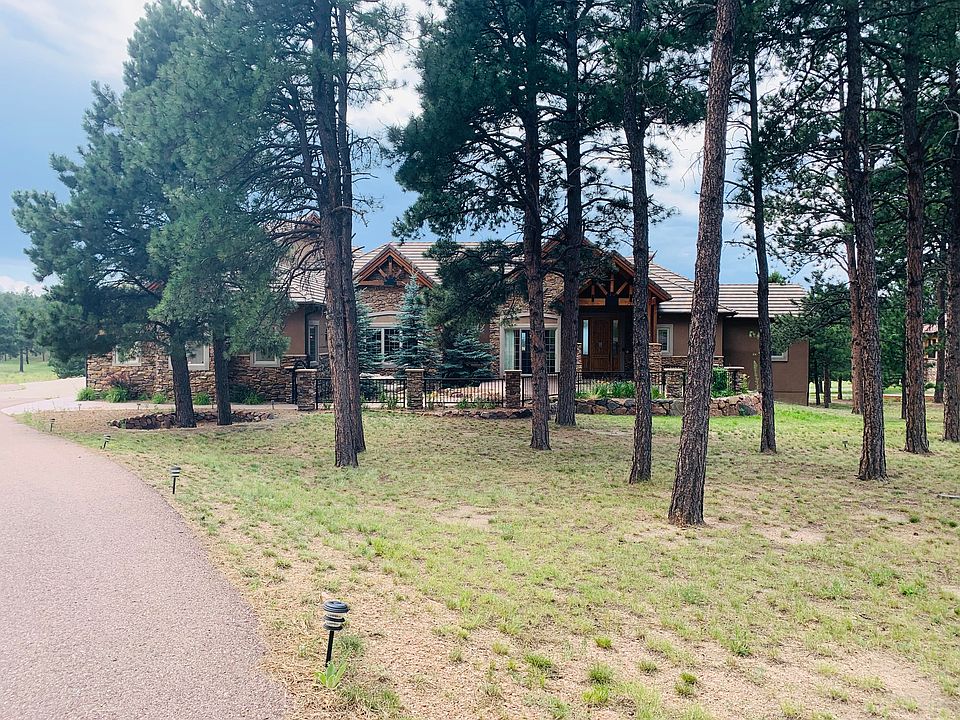 VIEWS, VIEWS, VIEWS!!!!. The house that your dreams dream about. This immaculate custom home is perfectly situated on 2.5 acres for the most beautiful, unobstructed views of Pikes Peak. Located in the highly desirable Cathedral Pines neighborhood in Black Forest, this home is private yet within a few minutes drive to the Flying Horse Golf Club, restaurants, shops and more.Entertain guests in the stunning gourmet kitchen that boasts two islands, viking appliances, 2 subzero refrigerators and freezers, pot filler over the stove, prep sink, warming drawers, leaded cabinets and walk-in pantry that goes through to the hallway with a butlers pantry. From the kitchen, enjoy an open concept dining room and living room with 12 ft ceilings that lead into the main level master retreat with two fireplaces, private walk-out to the patio and a lavish master bathroom with jetted tub, steam shower and custom closet with separate dressing area.This one won't disappoint! Also featured on the main level is the laundry room, office with coffered ceilings and two powder rooms for guests. The upper level features a secondary master suite with a living room/workout room for guests who would like additional privacy.The basement includes three bedrooms and 4 bathrooms that will knock your socks off! It's the perfect hangout for anyone with a game room, living room, theater, full bar with dishwasher, full size refrigerator and taps. It also has a wine cellar, vault and walk-out to an expansive covered patio for additional entertaining space! The 2,500+ sq. ft heated 7 car garage with RV bay, lift and separate bathroom and work area/office will please any car enthusiast.