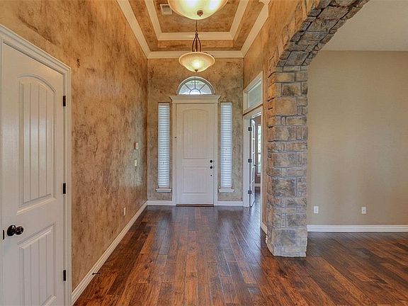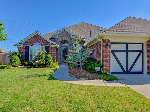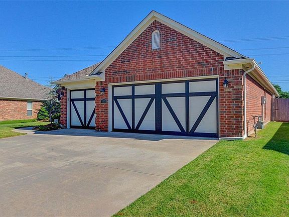 Spectacular 4 bed 2.5 bath with study in Carrington. This well built home is was builder's personal residence. Large open living room with fireplace, bookshelves and windows overlooking a greenbelt. Cook's kitchen with abundant counter space, double ovens, large pantry, quartz counters opens to a charming sun room. Both casual and formal dining. The ample master suite is split from the 3 secondary bedrooms. Over sized 3 car garage with storm shelter. Recent roof, garage doors and guttering. Well priced with fresh paint and new carpeting it is move in ready!