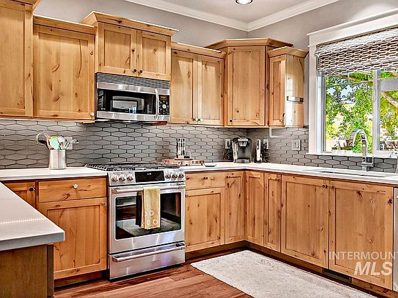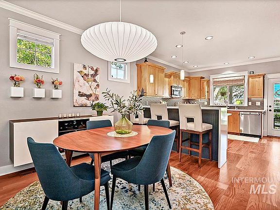 An incredibly stylish retreat in a fantastic Bench location, within moments of downtown attractions, parks, greenbelt & popular local dining + coffee spots. This extraordinary home will steal your heart! From the street, the rich navy exterior color, mature trees & thoughtfully designed landscape set the stage for the most spectacular interior remodel which is unveiled just beyond the front door. A perfect blend of modern luxury and fine finishes outline the great room design, where a stately Herman Miller dining room fixture illuminates with modern confidence. Beautiful hardwood floors span the distance from the entry throughout the entire great room and are complemented by craftsman millwork. At the center of the living room an elegant, stacked stone fireplace adds warmth & sets the stage for fine art placement on the mantle. The modern kitchen is thoughtfully designed with stylish quartz countertops, custom wood cabinetry, modern hardware, and stunning matte glass tile backsplash.