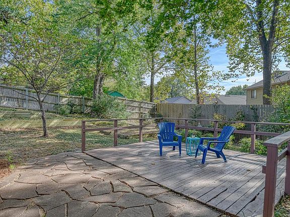 In West Norman's Cherry Creek, close to wonderful new park/playground, on a cul-de-sac street with beautiful trees, this home is warm and inviting from the big covered front porch and all thru to the back deck. Just refinished floors in entry, kitchen & dining are gorgeous! Leather-finish GRANITE & new sink, newer stainless range, dishwasher and lighting. Custom "pantry" cabinet is amazing! Large dining area with bay window adjacent. First living room has light from solar-tubes & wood stove provides great warmth. French doors then lead to family room (big enough for a pool table) and another set to the shady back yard with deck. Split plan layout with primary suite & bath (french doors to backyard) plus 2 bedrooms and another bath on one side. Double-sized bedroom with private bath opposite side of home. New granite & sinks in 2 baths, several new lights, many fans, 2 hvacs and 2 water heaters. Great location - easy to shopping, restaurants, and OU.