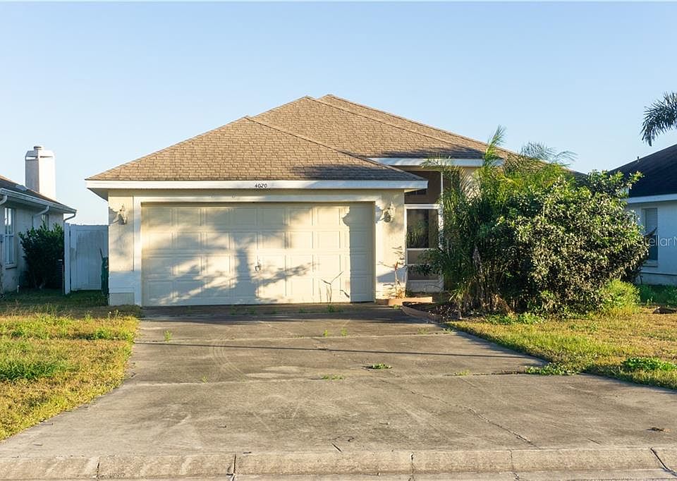 Rare opportunity to purchase a Chain-of-lakes home on almost a half acre of land. This As-is waterfront home is situated on a huge lot, with a private dock and direct access to Lake Rochelle. This open concept, split plan home boasts 4 bedrooms, 2 bathrooms, high ceilings, 2 car garage, and a screened in lanai with beautiful water views. The home features bright paint, granite counter tops and stainless steel appliances. This spacious home was built in 2006, so its still relatively new compared to homes in the surrounding neighborhoods. Property is sold AS-IS without any guarantee or warranty by the seller. It is suspected the home has Chinese drywall. Claims made in this listing are deemed correct by seller, but buyer understands it is their responsibility to confirm all info.
